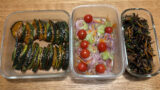仕事の締切はありませんが、腹ペコの息子の「お腹すいたー!」には待ったなし。 そこで、連休初日に備えて仕込んだのが、今回の「彩りつくおき」2品です。