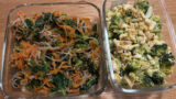 - 材料: ほうれん草1束、もやし1袋、鶏ガラスープの素(小さじ1)、ごま油(大さじ1)、白ごま