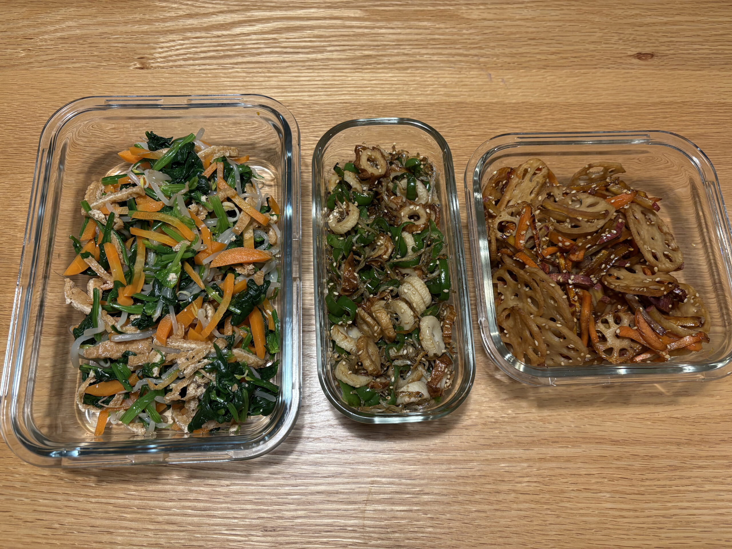きんぴらを作っている最中、息子が「れんこんって、穴から向こうが見えるから『見通しがいい』んだよね?」と学校で習った知識を披露してくれました。そんな会話を楽しみながら、タッパーに並んだ色鮮やかな副菜たちを眺めると、なんだか心の貯金が増えたような気分になります。